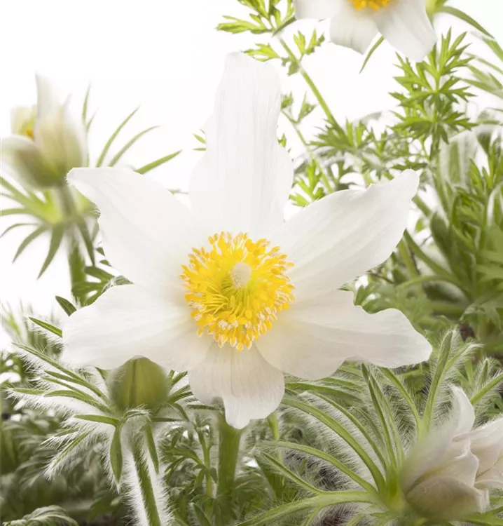 Pulsatilla vulgaris 'Alba' ist winterhart.