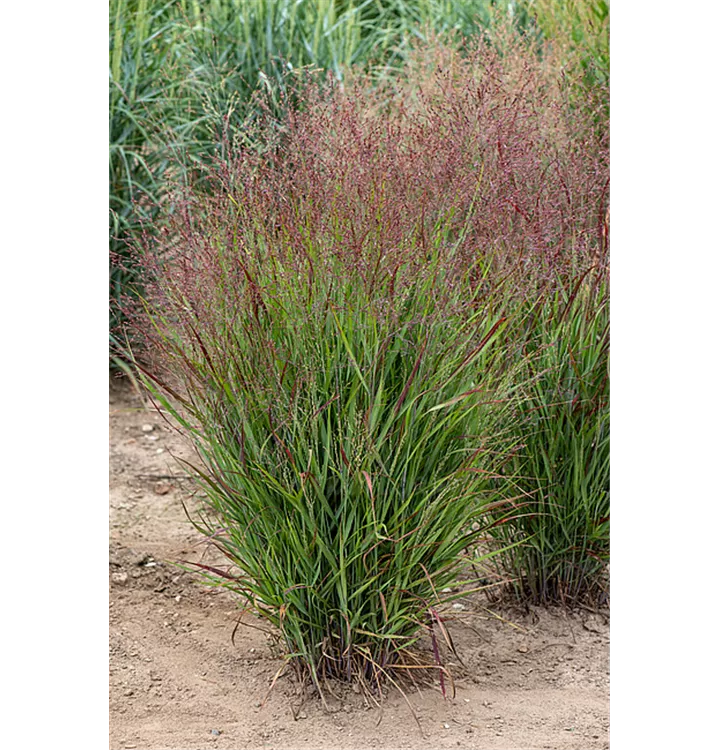 Die Rutenhirse setzt schöne Akzente mit Pflanzen wie: Beet- und Strauchrosen, Rittersporn, Sonnenbraut, Pfingstrosen, Sonnenhut, niedrige Glockenblumen, Ehrenpreis, fruchttragendes Johanniskraut, hohe Flammenblumen, kompakter Sommerflieder, Bartblume