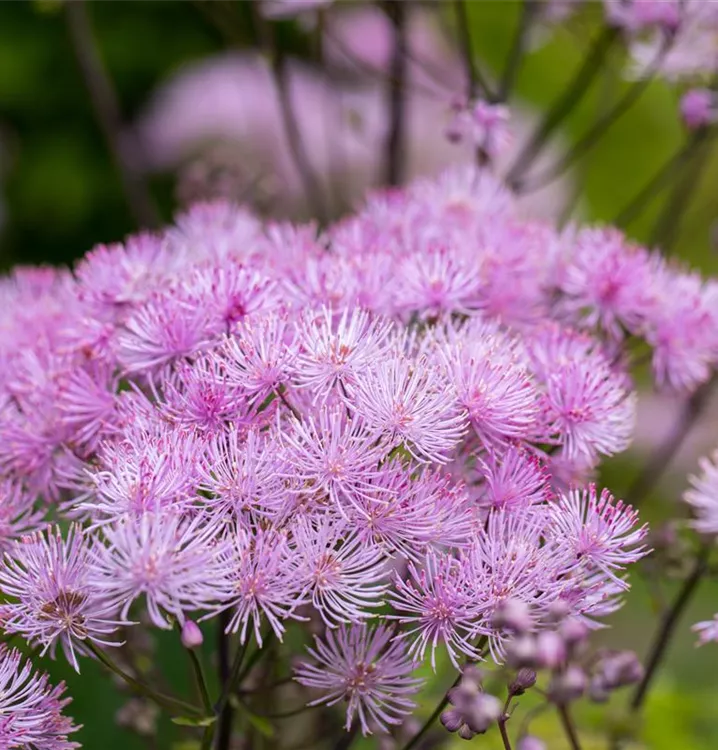 Thalictrum aquilegifolium 'Black Stockings' ist winterhart.