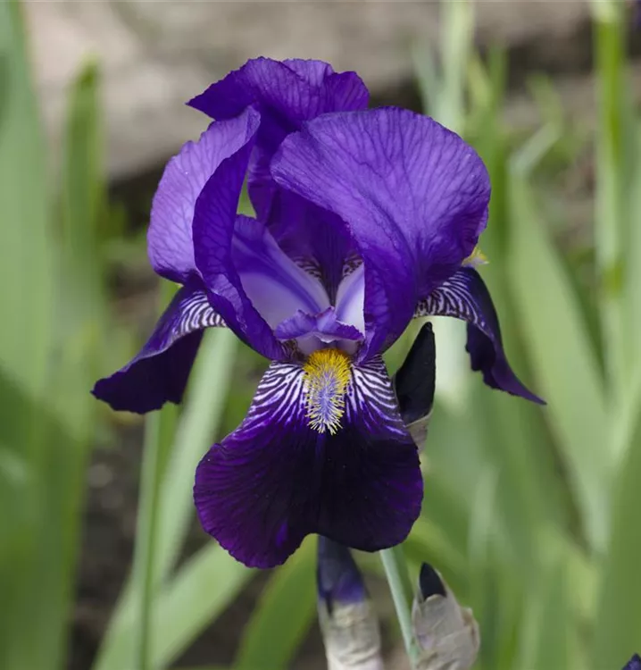 Die Schwertlilie setzt schöne Akzente mit Pflanzen wie: Taglilien, Lupinen, Goldwolfsmilch, Ehrenpreis, Lavendelheide, Sonnenröschen, Edeldistel.