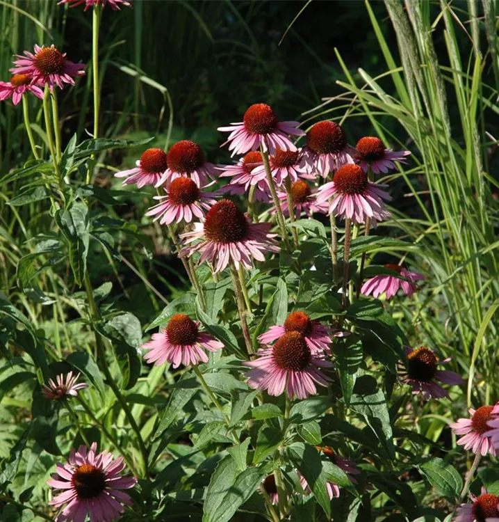 Der Garten-Scheinsonnenhut 'Magnus' setzt schöne Akzente gemeinsam mit: kleinblütige Bergminze, Ruten Hirse, Katzenminze, Steppen- Salbei, Lavendel, Bartblume, Myrthen- Aster, kompakte Indianernessel, Ehrenpreis, Prachtscharte, Rittersporn, Sonnenbraut, kompakter Sommerflieder