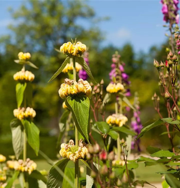 Das Syrische Brandkraut setzt schöne Akzente gemeinsam mit: Blutroter Storchschnabel, Blauraute, Sonnenhut, Dreimasterblume, Rittersporn, hohe Flammenblume, Flieder
