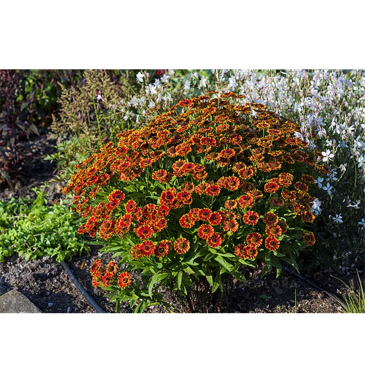 Die kompakte Sonnenbraut 'Bandera' setzt schöne Akzente mit Pflanzen wie: Strauch- Rosen, Pfingstrosen, Indianernessel, Sonnenhut, Mädchenauge, Herbst- Astern, hohe Flammenblume, kompakter Sommerflieder.