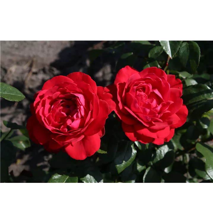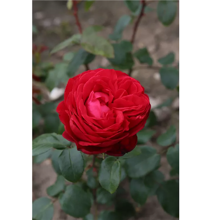 Blüte: öfterblühend, dunkelrot, stark gefüllt, leichter Duft