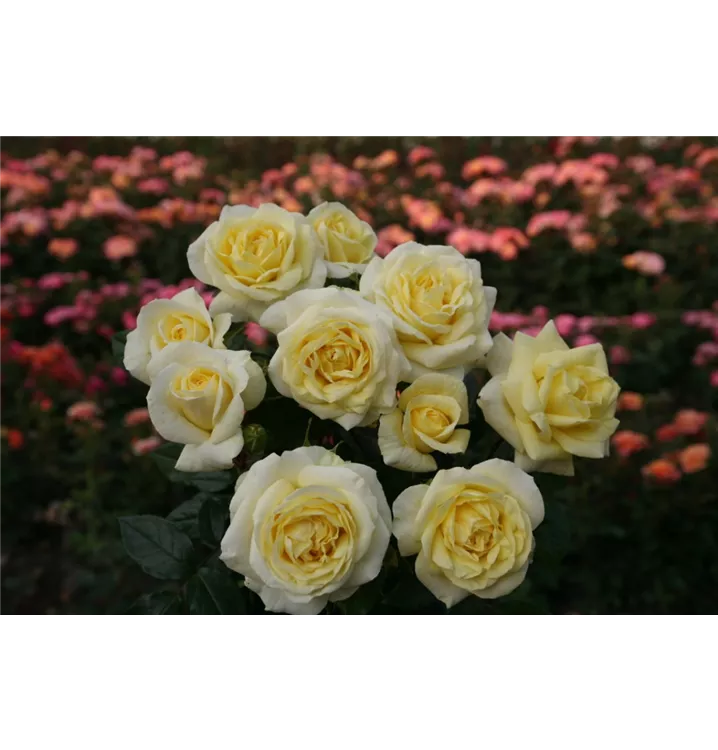 Die Edelrose 'Limona' ® setzt schöne Akzente gemeinsam mit Rosenbegleitstauden wie Steppen-Salbei, Lavendel, Prachtkerze, Storchschnabel.
