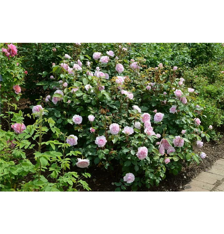 Blüte: öfterblühend, zart reinrosa, intensiver fruchtiger Duft