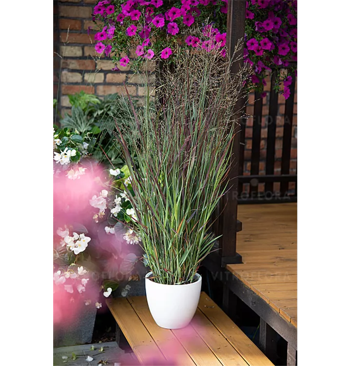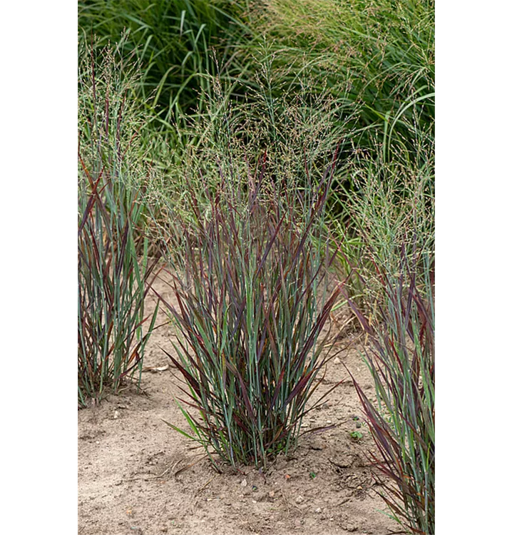 Die Rutenhirse setzt schöne Akzente mit Pflanzen wie: Beet- und Strauchrosen, Rittersporn, Sonnenbraut, Pfingstrosen, Sonnenhut, niedrige Glockenblumen, Ehrenpreis, fruchttragendes Johanniskraut, hohe Flammenblumen, kompakter Sommerflieder, Bartblume.