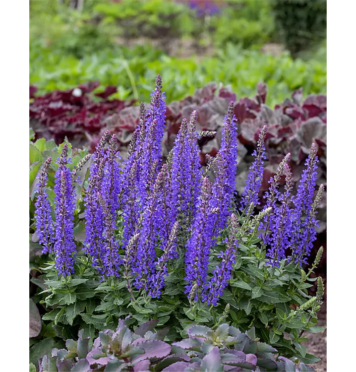 Der Steppen- Salbei setzt schöne Akzente mit Pflanzen wie: Rosen, Pfingstrosen, Sonnenhut, hohe Flammenblume, Bartblume, kompakter Sommerflieder, Rittersporn, Rispen- Hortensien, Herbst- Astern.