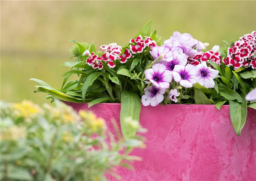 Dianthus barbatus, Petunia So bekommt jeder Balkon nicht nur die schönste Balkonbepflanzung im Sommer, sondern auch die pflegeleichteste.