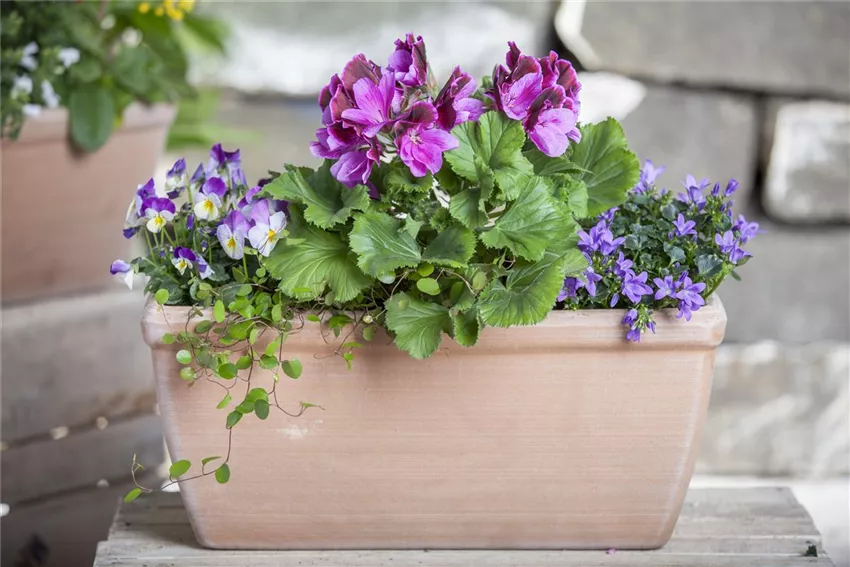 Viola cornuta Ein typisches Beispiel für Tiefwurzler, auch Pfahlwurzler genannt, sind Rosen. Viele von ihnen führen ein kümmerliches Dasein, weil ihre Kübel zu flach sind und ihre Wurzeln am Wachstum in die Tiefe gehindert werden. Pflanzgefäße für Pfahlwurzler müssen nicht groß, aber hoch sein. Sehr gut passen etwa die kelchförmigen Pflanzgefäße aus Terrakotta, die häufig in mediterranen Gärten zu finden sind. Wer es lieber moderner mag, für den gibt es heute eine breite Auswahl an quader- und zylinderförmigen Gefäßen aus den verschiedensten Materialien und für jeden Geschmack.