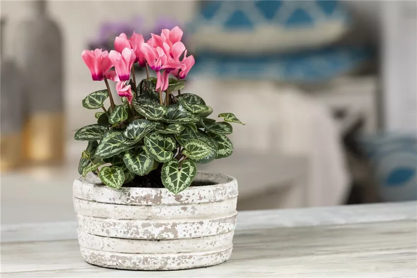 Cyclamen persicum, rosa Wenn Zimmergärtner ihre Zimmerpflanzen pflegen, achten sie meist ganz besonders auf ein qualitativ hochwertiges Substrat. Denn dieses muss sowohl Wasser auch wichtige Nährstoffe speichern und an die Zimmerpflanze abgeben können. Spezielles Tongranulat oder Substrat aus Kokosfasern eignen sich daher besonders gut für Zimmerpflanzen und ihre individuellen Bedürfnisse.
