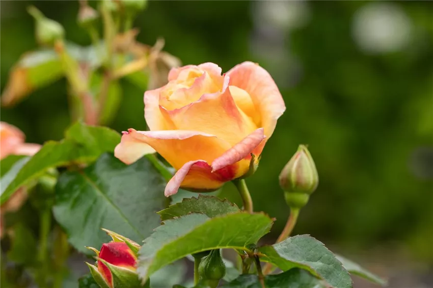 Beetrose, apricot Rosen werden oft als Königin der Blumen bezeichnet. Sie sind wahrscheinlich die am meisten verkaufte Blumensorte und haben einen überdurchschnittlichen Bekanntheitsgrad. Sie blühen in fast jedem Garten und können durch ihre große Vielfalt überzeugen.